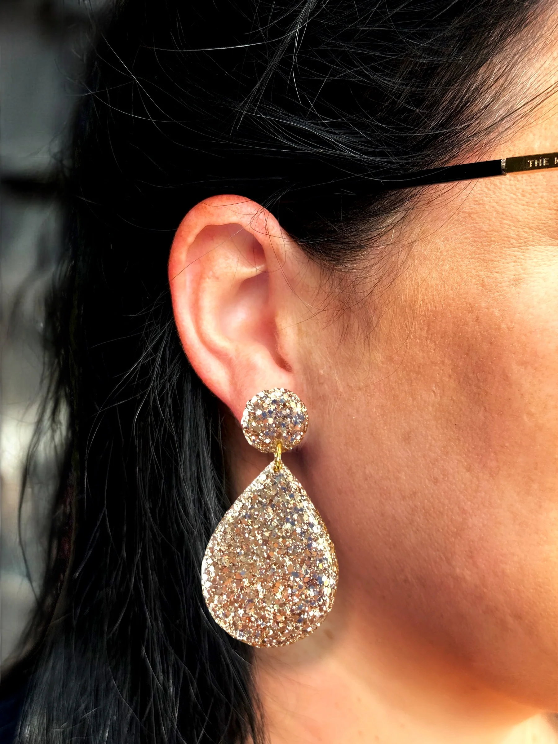- Lightweight Comfort: Made with lightweight resin and our bestselling Vintage Champagne glitter — these earrings offer all the boldness of a statement piece, without the heaviness.