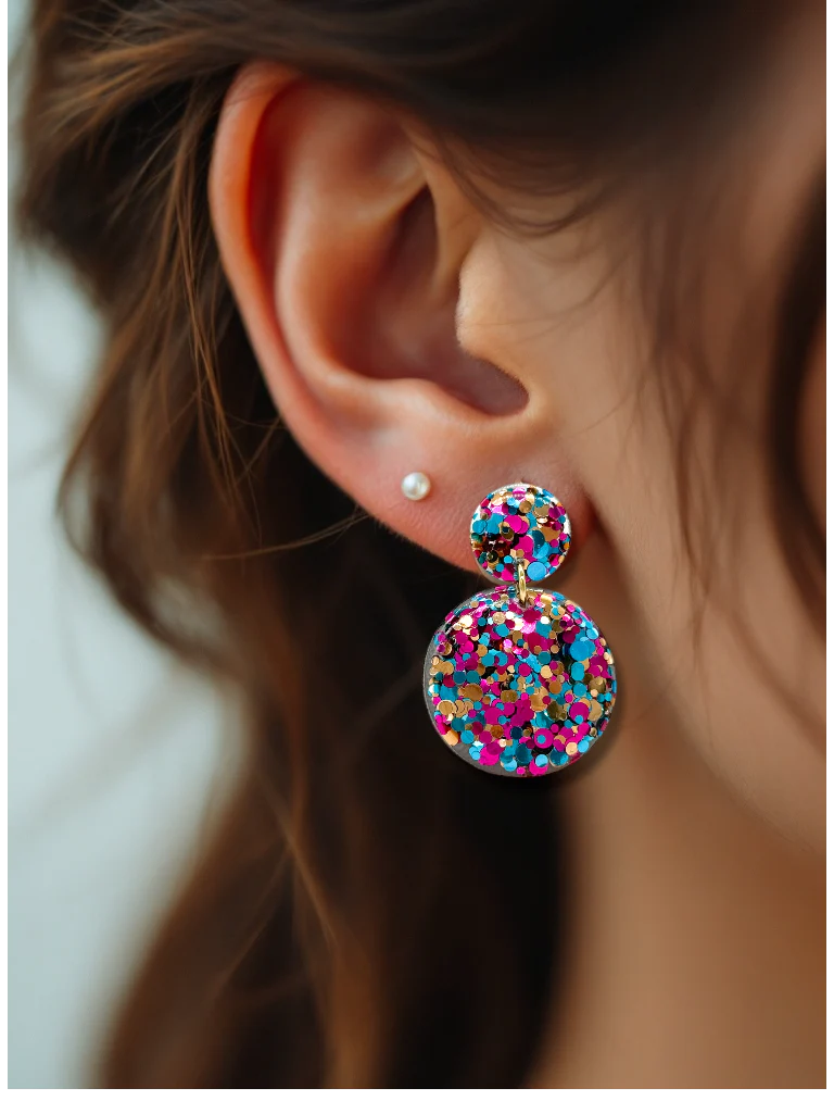 - Lightweight Comfort: Crafted with resin and the stunning mix of gold, aqua & magenta glitter, these earrings bring the fun without the pull—wear them all day with ease.