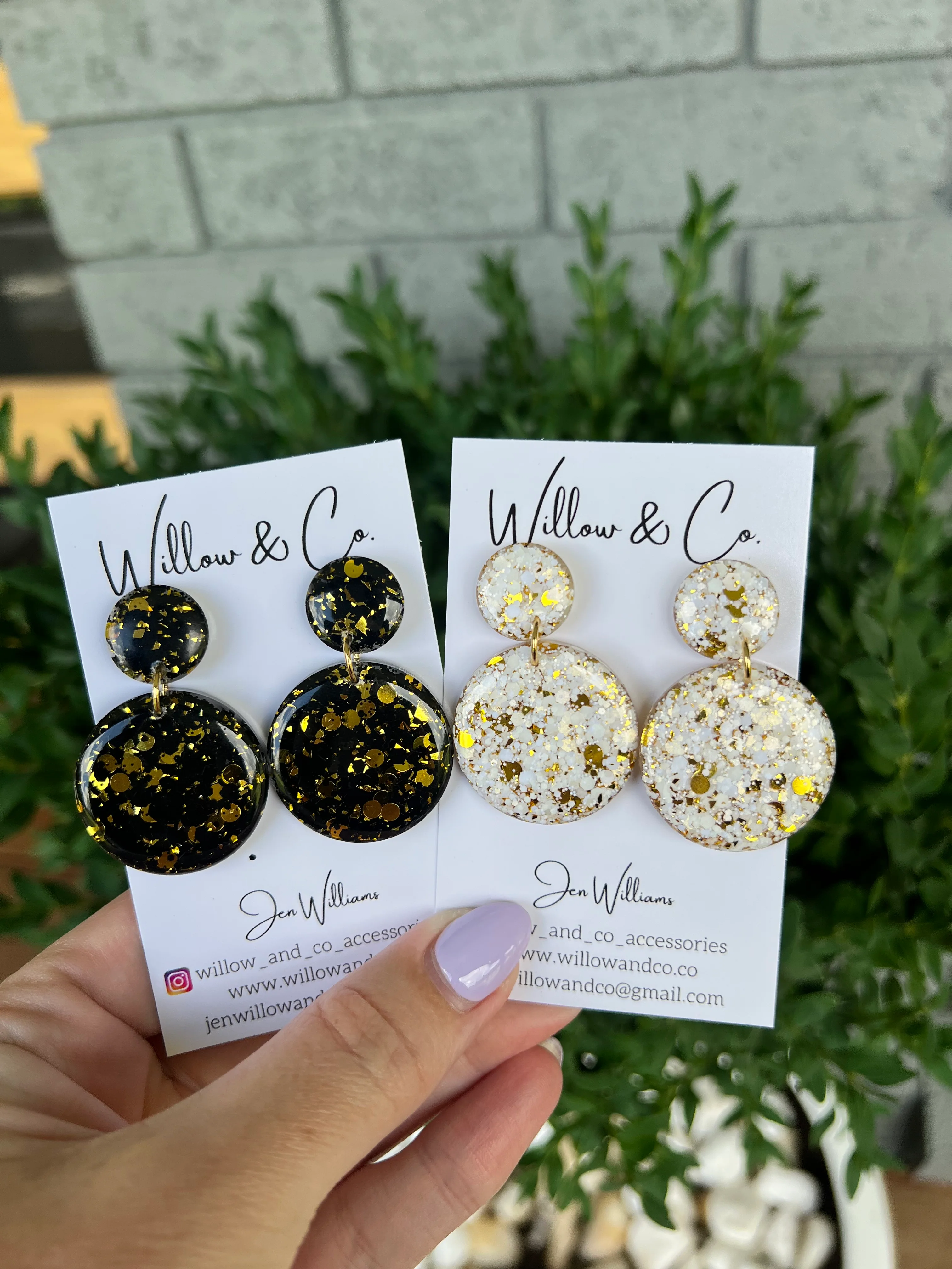 Due to the handmade nature of our earrings, minor imperfections or subtle variations in colour and glitter placement are part of what makes your pair special. Colour may also appear slightly different depending on your screen or lighting.